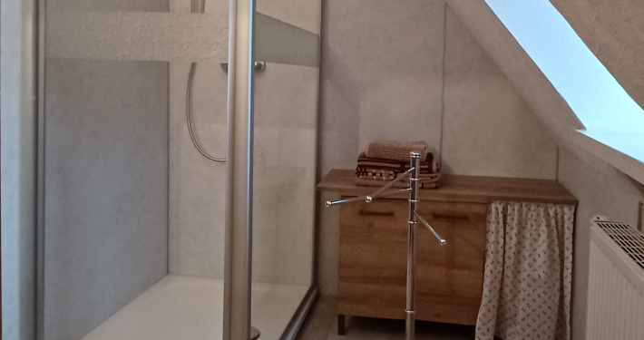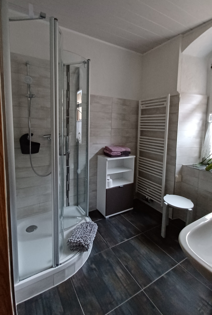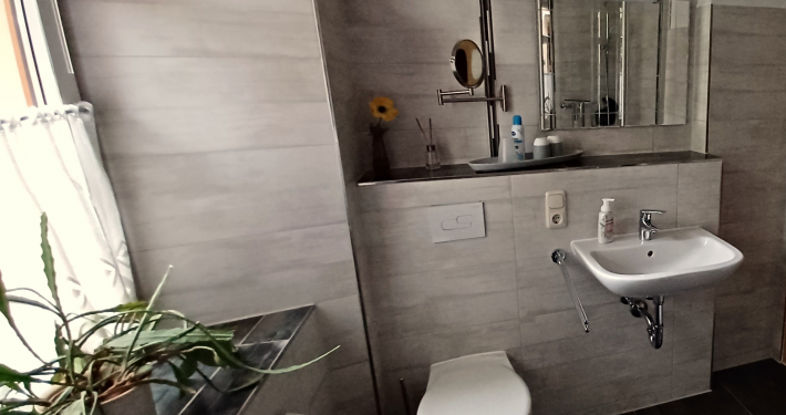 Wir vermieten 2 Ferienwohnungen: eine Wohnung im Dachgeschoss und eine im Erdgeschoss. Die mittlere Etage bewohnen wir selbst.